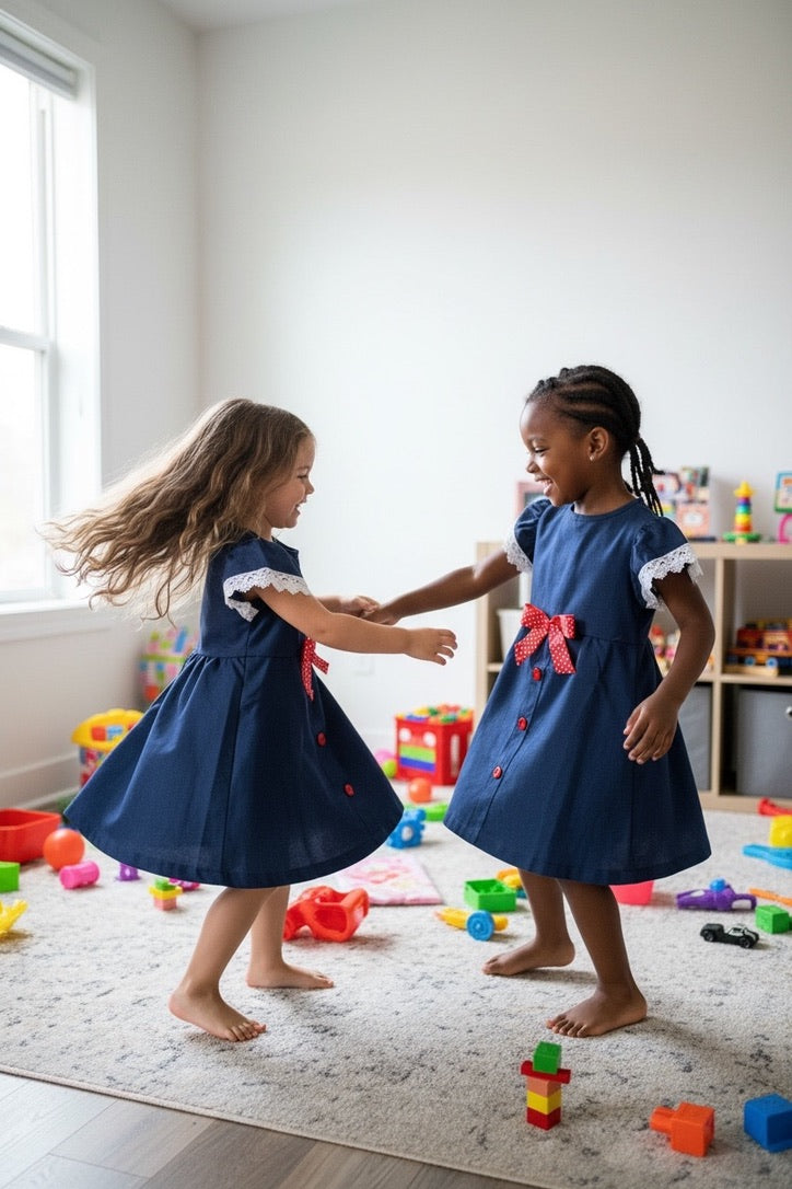 Descubre el vestido ideal para acompañar a tu niña en todas sus aventuras. Nuestro vestido de chambray 100% algodón está diseñado pensando en la comodidad, libertad de movimiento y el cuidado de la piel sensible de las más pequeñas.
